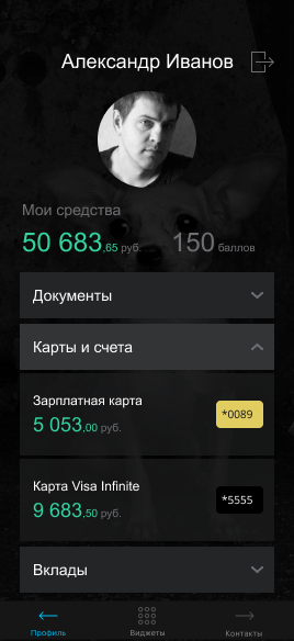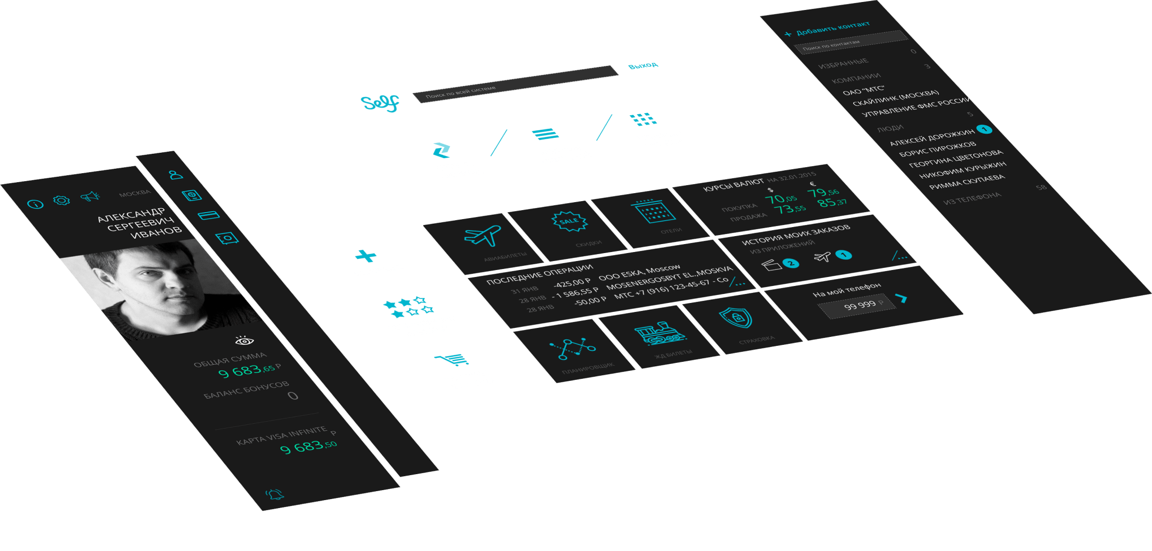 Self is not just a set of tools, but a combination of Internet banking, personal finance management system, booking service and social network. We have collected all banking and online services in one Internet bank, creating a user-friendly and customizable environment around the client, where he can transfer money, deposit account, buy airline tickets, and if he suddenly does not have enough money, he can get a loan. In addition, the solution helps users create a calendar of financial transactions and plan a budget, thus combining functional online banking and personal financial management.